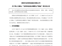 寶明科技關(guān)于終止馬鞍山寶明科技復(fù)合銅箔生產(chǎn)基地項目的公告